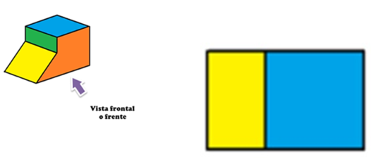Analiza: ¿Qué puedes ver desde arriba? un cuadrado color azul y la rampa de la imagen en color amarillo, desde arriba es seguro que no verás la inclinación de la rampa, por lo que sólo se podría ver un rectángulo amarillo.